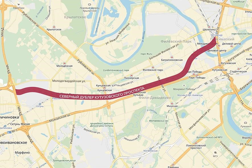 Северный дублер Кутузовского проспекта пройдет Молодогвардейской транспортной развязки до ММДЦ «Москва-Сити». Протяженность дороги составит 10 километров.